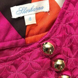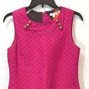 On trend color PINK! This is one of the hottest colors this spring! Classic style dress by Shoshanna. It is a cotton/silk blend and features chunky gold button details. It is in excellent condition. Size is 4 and measures pit to pit 17.5 inches and length is 34 inches. Great for a summer wedding or graduation.