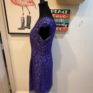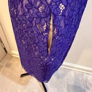 This elegant Shoshanna dress in a rich purple hue is designed for wedding guests and cocktail events. Featuring a fit and flare silhouette, it boasts a bateau neckline and flutter cap sleeves adorned with shimmering sequins. The embellished details add a touch of glamour, making it a standout choice for special occasions.