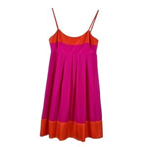 Shoshanna Short Dress 8 Hot Pink Orange Silk Color Block Empire Waist