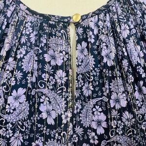 Shoshanna Purple Short Sleeve Willow Paisley Lurex Stripe Julisa Midi Dress
