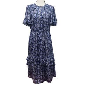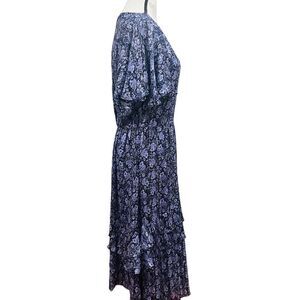 Shoshanna Short Sleeve Silk Willow Paisley Lurex Stripe Julisa Midi Dress size 8