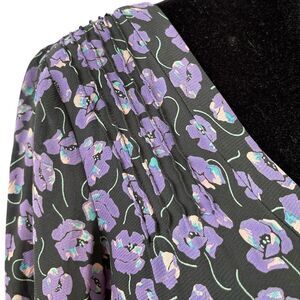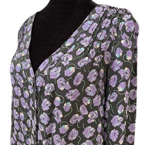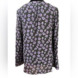 Shoshanna Silk Dark Floral Blouse Size 4 Violet Feminine Top Shirt Long Sleeve
