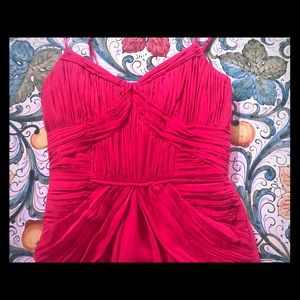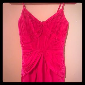 NWOT. Never worn. Size 2. Bright and feminine raspberry silk short cocktail dress. Interior boning for extra support. Perfect for a spring or summer wedding/cocktail party.