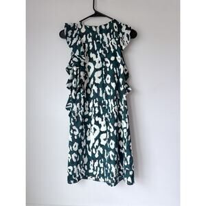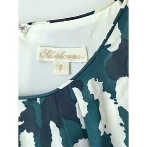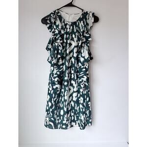 The Shoshanna Silk Sleeveless Shift Dress in size 2 is a stylish and chic option for any woman's wardrobe. This green dress features a flattering shift style with a sleeveless design and a zip closure. The dress is made from a comfortable cotton blend material and has a short length, making it perfect for any occasion. With its animal print pattern and flower theme, this dress is sure to make a statement and turn heads wherever you go.