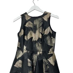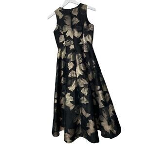 Shoshanna Size 0 Black Gold Coraline Jacquard Cocktail Floral Luxury Midi Dress
