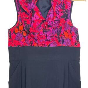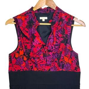 Shoshanna Size 12 Purple and Red Floral Silk Blend Cocktail Dress with Pockets