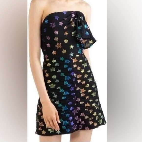 Lightly worn (excellent condition!!) Shoshanna strapless dress from around 2021. Black with colourful stars.