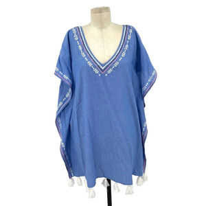 Shoshanna Swimwear Chambray Embroidered Tasseled Caftan Coverup One Size