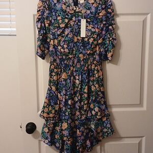 This Shoshanna mini dress captivates with its bold floral print, offering a chic and playful look. The dress is designed with a flattering silhouette that enhances your style effortlessly. Its lightweight fabric ensures comfort, making it an ideal choice for any occasion.