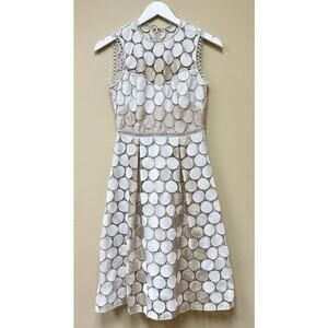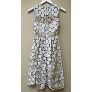 Shoshanna White Metallic Circle Lace Glengarry Cocktail Midi Dress Size 0