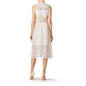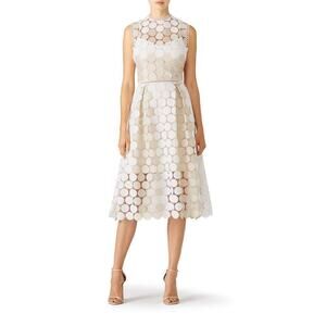 Shoshanna White Metallic Circle Lace Glengarry Sleeveless Midi Dress