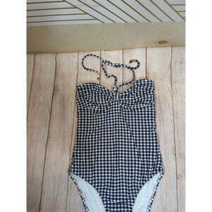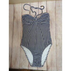 Shoshanna Women's Gingham One Piece Blue White Tie Neck Halter Ruched Size 2