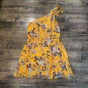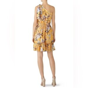 Shoshanna Yellow Carmela Floral Dress One Shoulder Sleeveless Ruffled Hem