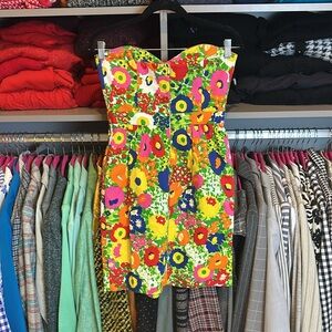 Shoshanna multicolored floral strapless back zipper closure mini dress size 2