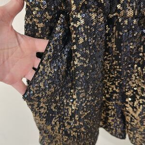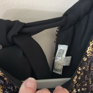 This is gold and black but in the light, the black sequins have a hue of blue.