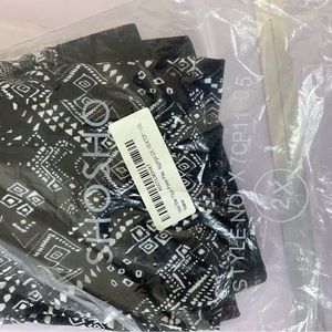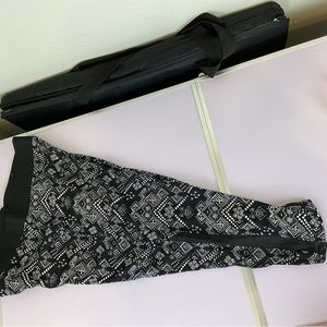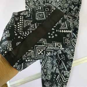 Shosho black and white midrise soft capri leggings with sheer mesh son side 2X