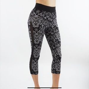 Shosho Black and white Midrise soft capri leggings with mesh panels