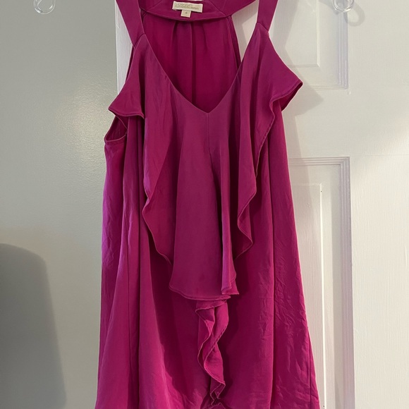 Shoshonna Ruffle front sleeveless top, Size 4. It's so cute on! Rich magenta color. Great dressed up or with a pair of jeans!