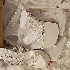 London Rag "Shots Up" ultra high platform heels in white color with transparent/clear straps. New. Size 6.5.