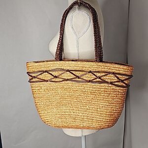 Shoulder Bag 100 Percent Wheat Straw Braided Handles Tan Brown NWT