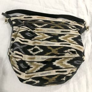 Leather and fabric shoulder bag. Perfect colors for fall and winter season! It’s been well loved but in great condition.