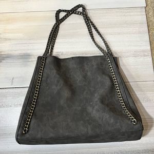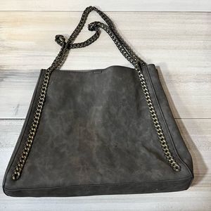 Shoulder Bag Faux Suede Charcoal Gray with Chain Braided Straps and Details