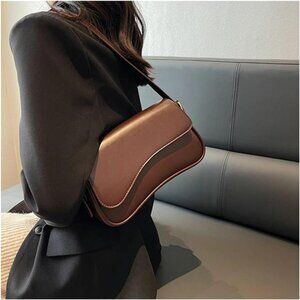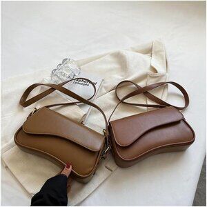 Shoulder Bag Vegan Leather with 2 Removable Strap Camel Brown