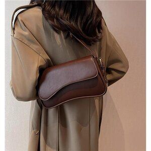 Shoulder Bag Vegan Leather with 2 Removable Strap Coffee Brown