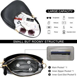 Spacious Space: This shoulder bag for women has a main pocket, a inner zipper pocket and 3 inner card pockets. The spacious space can accommodate wallets, credit cards, drivers license, sunglasses, skin care products, cosmetics, keys, and mobile phones, etc
