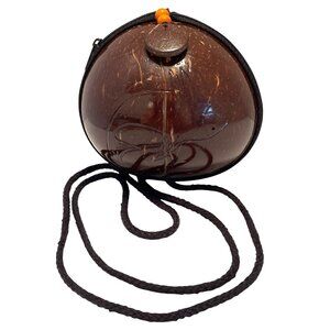 This unique, vintage coconut shell shoulder purse combines natural aesthetics with practicality. Its durable shell, soft green lining, and secure zipper closure ensure functionality. The woven strap provides versatility and comfort, while the bead detail adds a touch of elegance. Suitable for carrying small essentials, this piece is both stylish and eco-friendly.