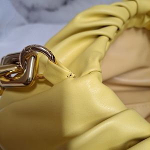 Gorgeous buttery yellow shoulder purse. Gold tone chunky chain strap. Wonderful condition.
