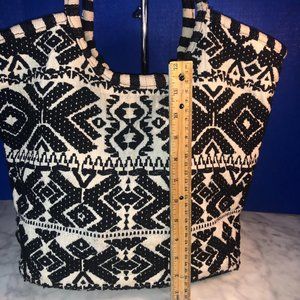 Shoulder Purse Tote Bag Large Jacquard Woven Bohemiam Black White Neutral NWOT