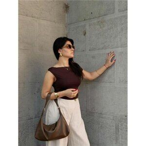 Shoulder Purses Crescent Hobo Bags Trendy Coffee