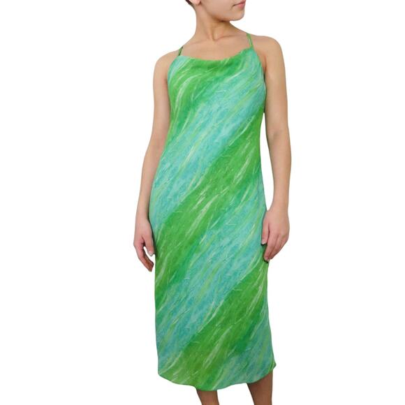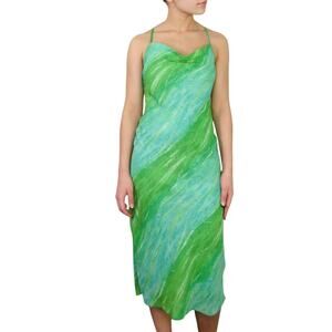 Shoulder Y2k Green & Blue Swirly Dress Babydoll Cami Midi Dress Small Medium