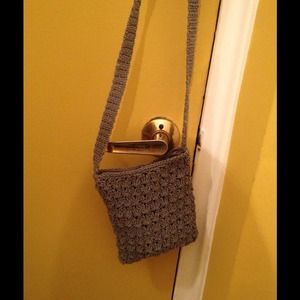 Gray woven look small shoulder bag. Used 2xs for evenings out. Holds a camera and phone and some make up. Many compliments. My husband and I are cleaning to move to a smaller place.