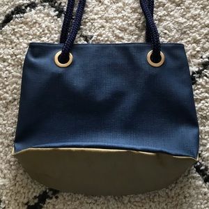 Navy and gold shoulder bag. Zipper. Gold hardware.
