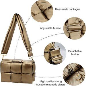 1.SOFT & LIGHTWEIGHT - This woven quilted crossbody purse is made of top-quality waterproof taslon nylon fabric with pure cotton filling, weighing 0.2kg, ultra-lightweight material, soft to the touch, bringing you all-day comfort. The puffer purse bag is hand-woven, simple and unique.