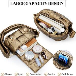 Shoulder bags for women, Light-weight small puffer purses waterproof, hand-woven