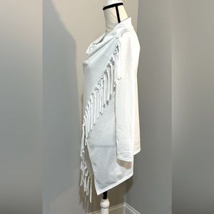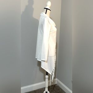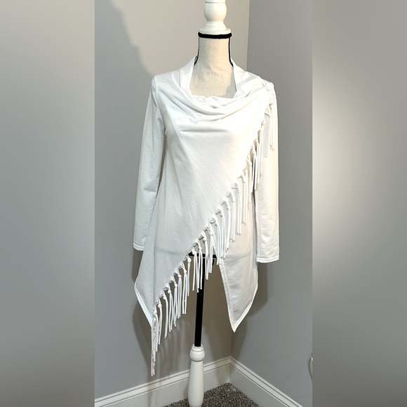 One button on the shoulder. Long sleeve top. 100% cotton comes from a smoke-free pet free home.