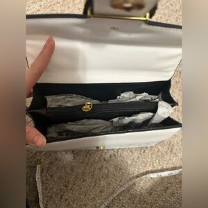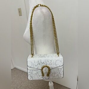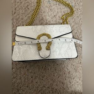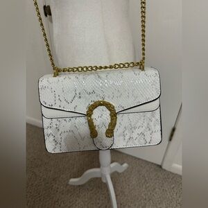 White with gold snake texture. Brand new purse with three compartments inside, perfect for a night out or everyday use.