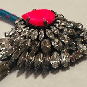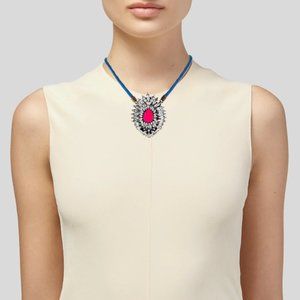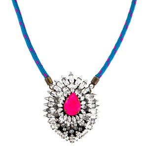 Shourouk Neon Pink and Blue Crystal and Cord Pendant Necklace
