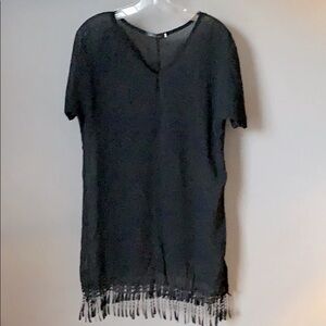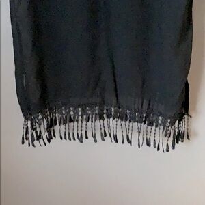 Show Lai Bathing Suit Sheet Cover Up. Perfect, like new condition. Size XL. Black beaded fringes at hem. Semi sheer silk blend. V-neck.