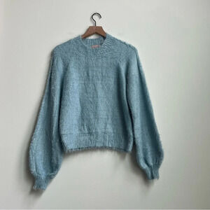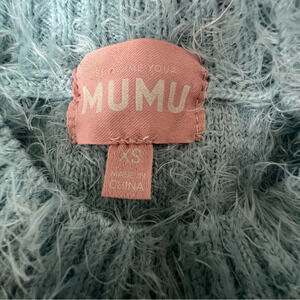 Show Me Your MUMU Women XS Vienna Sweater Frosty Blue Knit Shaggy Furry Winter