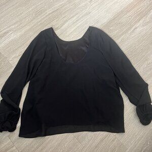 Show Me Your MUMU Womens L Blouse Black Long Balloon Sleeve Low Open Back