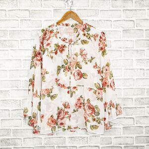 Show Me Your MUMU Women's semi sheer floral top bell sleeve size 2XL