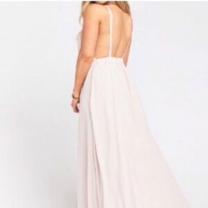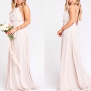 She has an ultra flattering neckline that moves to an empire elastic waist before flowing in a lightweight maxi dress.