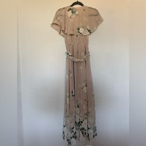 Show Me Your MuMu Audrey Maxi Dress Size XS. Great condition. The Audrey Maxi Dress is a classic beauty while being current and chic. Her crossover ruffle gives a bit of a flutter and the appearance of a wrap but with the security of an elastic waist. Includes a matching detachable sash to hide that little waist if you please. She is light, airy, and very bra friendly. Chiffon - 100% Polyester *Lined to the ground *No slits *Bra friendly *Elastic waist *Detachable sash included