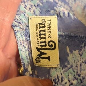 Show Me Your MuMu Blue Print Sheer Tunic 3/4 Sleeves Flowy Relaxed Fit Sz XS