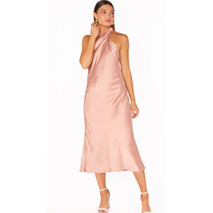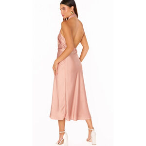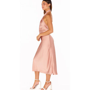 Elegant halter neck midi dress. Soft satin finish. Perfect for special occasions. Just wore once for friends wedding. I just had professionally dry cleaned. Ready to wear for your next event!