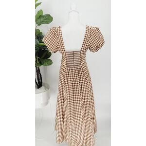 Charming gingham pattern. Puff sleeves. Flowy maxi length. Perfect for casual outings.